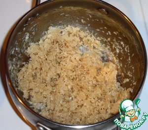 Добавьте топленое масло и варите смесь, пока вся жидкость не впитается. Добавьте мускатный орех и снимите с огня. Хочу заметить, что для начинки мне хватило половины кокосовой стружки.