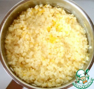 Доведите молоко в кастрюле до кипения и положите в него мелко натертую цедру одного апельсина. На слабом огне варите цедру около 2 минут, затем добавьте рис. Накройте кастрюлю крышкой и варите примерно 20 минут. При необходимости подлейте молоко. Снимите кастрюлю с плиты и добавьте к рису сахар и сливочное масло (50 г).