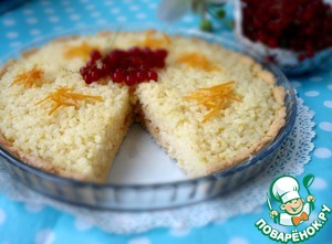 Смажьте теплый корж джемом и выложите рисовую начинку. Уберите в холодильник до застывания (я убрала на ночь). Готовый пирог посыпьте цедрой апельсина и украсьте ягодами по вкусу. Пирог получился ароматный и вкусный!