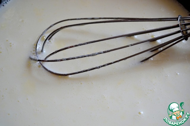 Доводим его до кипения и постепенно, постоянно помешивая, кладем рисовую смесь. Постоянно мешаем ее венчиком, до загустения, провариваем примерно 4 минуты
