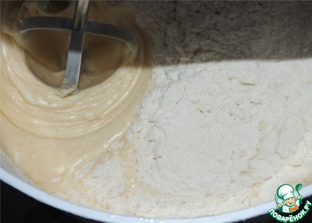 Яйца взбить до пышности, всыпать сахар и ванилин, еще раз хорошо взбить.