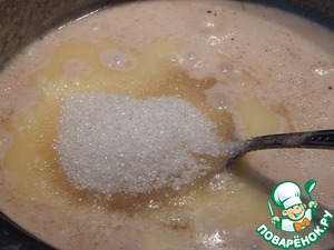 Далее добавляем в рис масло и сахар, и, продолжая помешивать, варим рис еще 10 минут.