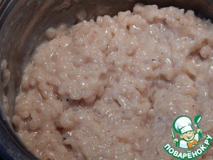 Молоко доводим до кипения, солим его и добавляем ванильный сахар. Затем выкладываем рис и варим, помешивая, 10 минут.