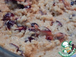 Выкладываем рис в отдельную посуду, даем немного остыть и подмешиваем цедру и кусочки черешни.