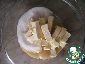 Желтки соединяем с размягченным сливочным маслом и сахаром. Растираем до однородной массы.