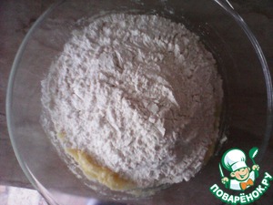 Добавляем муку и замешиваем тесто. Получаем маслянистый колобок, который убираем на некоторое время в холодильник.