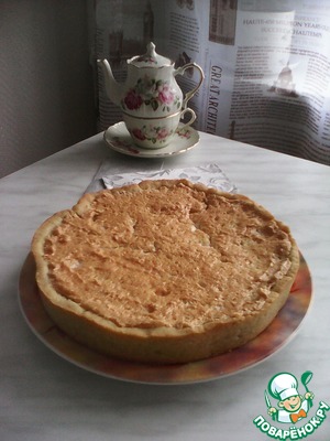 Через указанное время вынимаем наш корж из духовки и даем немного остыть. Заполняем его апельсиново-лимонной массой.