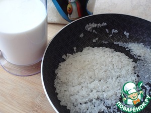 Положите рис в кастрюлю, залейте стаканом молока и доведите до кипения на среднем огне. Уменьшите огонь до минимально возможной величины и варите рис около 20 минут,