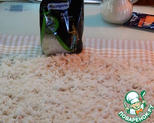 Выкладываем рис на сухое полотенце и даем ему подсохнуть минут 25.