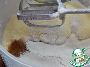 Взбиваем яйца до побеления, добавляем корицу, сахар, немного муки. Вновь взбиваем.