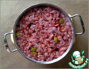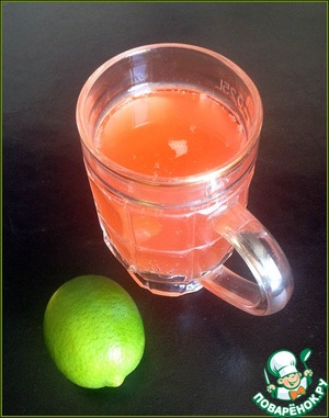 • Ополаскиваем клубнику, снимаем с неё зелень, крошим в кастрюлю и давим вилкой. По ходу выбрасываем плохую и едим самую красивую. Получаем примерно 800 гр. подготовленной клубники. Туда - же отправляем рубленные вместе с кожурой лаймы. Понятно, что можно просто прокрутить всё это дело в блендере, но, боюсь, в таком случае напиток будет достаточно сложно цедить. Засыпаем в кастрюлю оставшийся сахар, заливаем воду, доводим до кипения и выключаем.