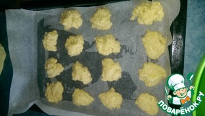 Выложить тесто на пергамент чайной ложкой. При выпекании печенье увеличивается, поэтому выкладывайте их подальше друг от друга.