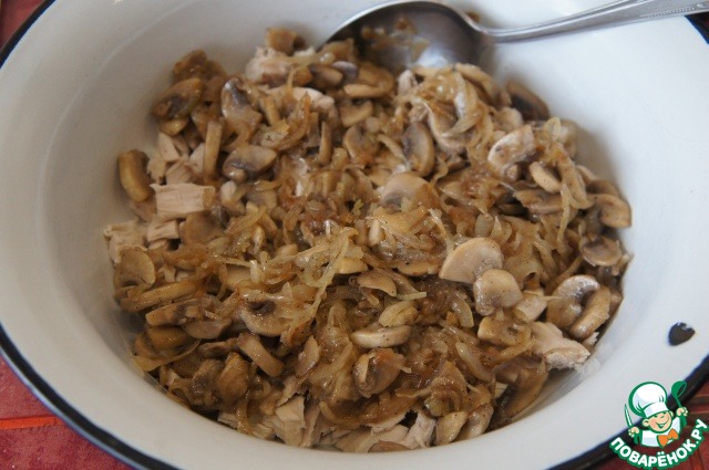 Грибы и лук обжарить вместе на растительном масле до готовности.