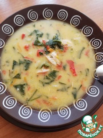 [+5]Шпинат и перец взяла из домашней заморозки, варила на курином бульоне, а так без изменений.