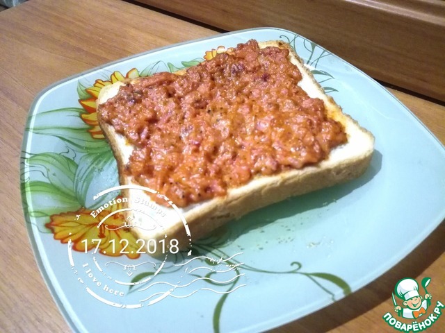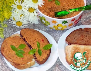 Намазка хороша на белом и чёрном тосте, который можно съесть с первым блюдом, кофе, чаем или взять на природу.