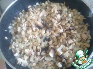 Шляпки слегка подсолить изнутри и снаружи. Обжарить шляпки шампиньонов, добавив 1 ст. л. растительного масла.