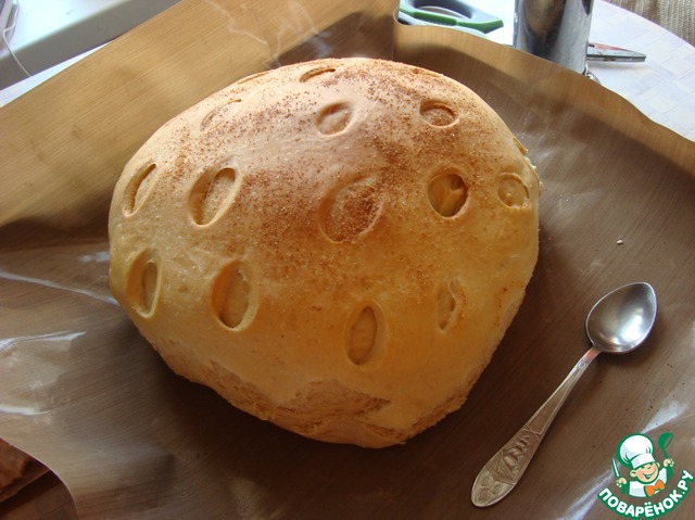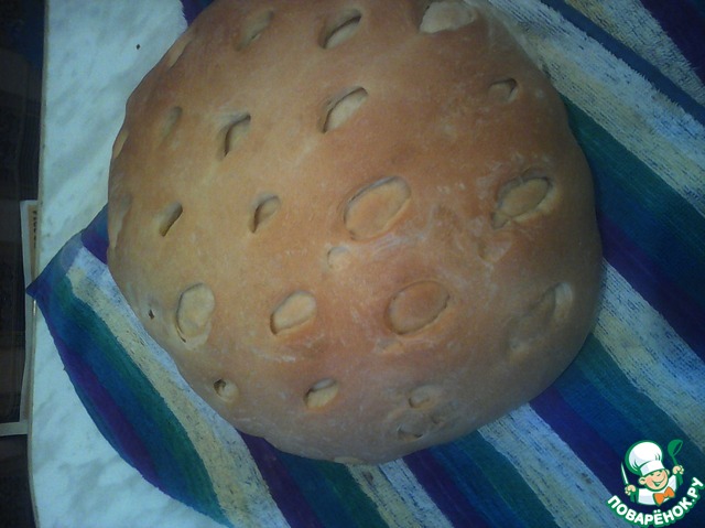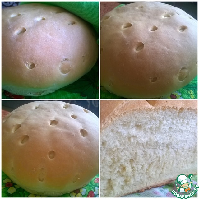 Только у меня не получилась верхняя часть дырчатая. Тесто у меня было слишком нежное, боялась переложить муки. Но на вкусе это никак не отразилось. Утром снова буду ставить тесто. От этого хлебушка почти ничего не осталось.