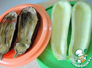 Затем овощи вынимаем, остужаем, аккуратно маленькой ложечкой выгребаем серединку, стараясь не повредить шкурку