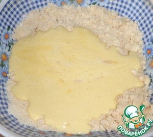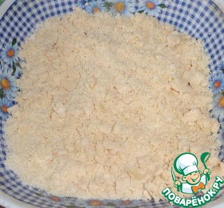 В муку с разрыхлителем теста добавить кусочки маргарина. Перетереть в крошку.
