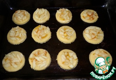 Противень смазать немного маслом. На него выкладываем кружочки из теста. На тесто кладем грушу.