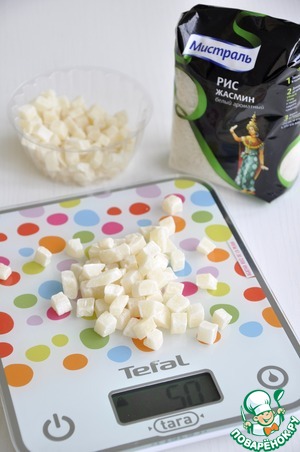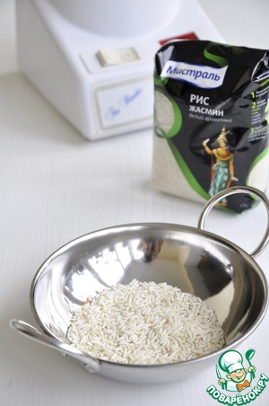 Сначала приготовим рисовую муку. Для этого рис следует хорошо подсушить на разогретой сковороде. Он должен побелеть, вздуться, пойдет характерный рисовый запах. Не передержите до желтого цвета зерен.
