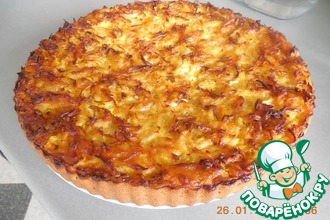 При выпечке стоял такой аромат, что моему пирогу особо остыть не дали, и начинка полностью не застыла, так как ели мы его ещё теплым. Еле успела его сфотографировать, едоки уже стояли за спиной.