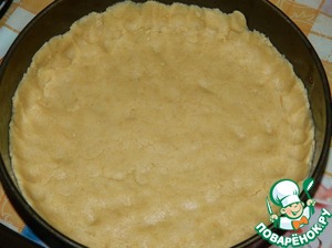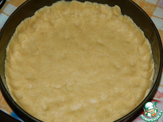 2/3 теста выкладываем в разъемную форму для выпечки (у меня 24см), формируя бортики где-то 3-4 см. И убираем форму в холод.