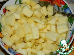 Для начинки яблоки очистить и нарезать кубиками. Полить соком лимона, чтобы они не почернели