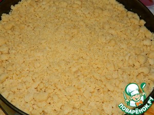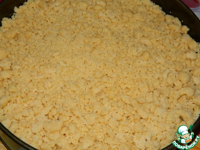 Сверху распределяем остальные крошки теста, чтобы не осталось открытых мест. Выпекаем при 180 С 50-60 минут, до румяности.