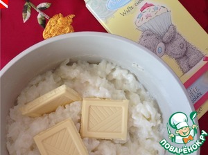 В горячую кашу кладем белый шоколад, хорошенько размешиваем и остужаем.