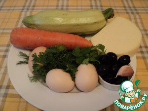 Ингредиенты для «Яичная запеканка с кабачковыми рулетами и морковью»: