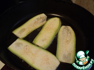 Слегка поджариваем пластинки, немного перчим. Нашей задачей является не пожарить его, а размягчить и придать пластинкам гибкости.