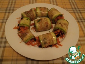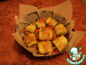 Рецепт «Яичная запеканка с кабачковыми рулетами и морковью»: