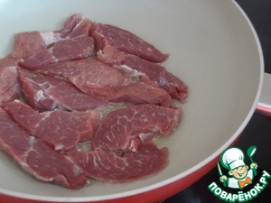 Растопите половину сливочного масла с половиной столовой ложки оливкового масла в вок-сковороде и обжаривайте мясо на сильном огне, пока оно не подрумянится. Один раз переверните.