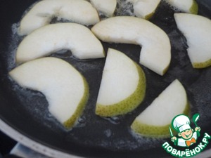 Обжаривайте груши на оставшемся масле до румяной корочки с обеих строн. Если блюдо некоторое время ждет сервировки, то обжаренные фрукты лучше не оставлять в сковороде - они впитают слишком много масла. Выложите их на бумажное полотенце.