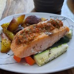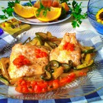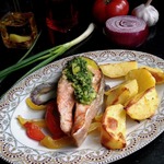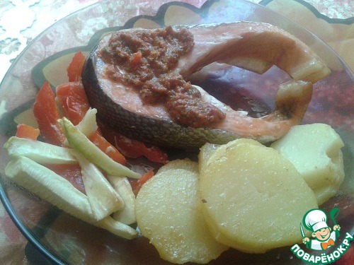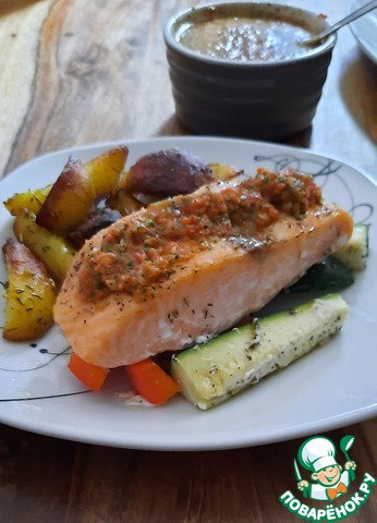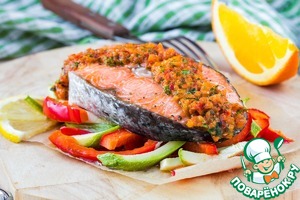 Рецепт «Лосось с овощами и апельсиновым соусом»: