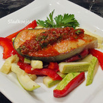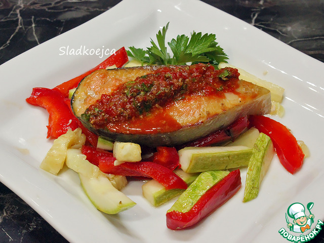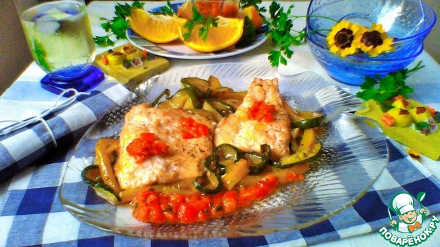 Рыба приготовленная при низких температурах получается невероятно нежной и сочной. С интересным сладковатым соусом и овощами - прекрасный летний тандем! Овощи можно заменить на любые другие, но именно перчик и кабачок идеально дополняют вкус блюда.