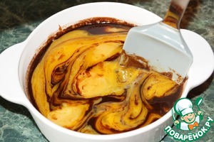 Начнем с теста: шоколад, масло, сахар растопить на самом маленьком огне. Полученную массу остудить. -