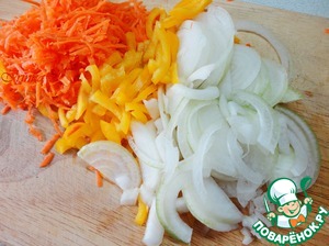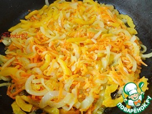 Сначала кладем морковь, потом лук, следом - сладкий перец. -