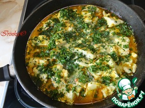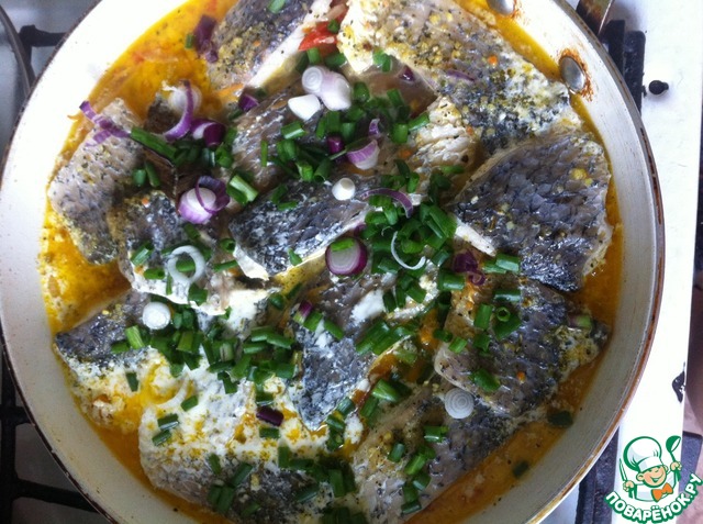Накрываем крышкой и припускаем на слабом огне 15 минут. Соус должен только чуть булькать, иначе рыба у вас развалится.