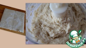 Размораживаем слоеное бездрожжевое тесто в микроволновке на самом щадящем режиме разморозки (или в духовке), чтобы тесто поплыло, разогрелось, но не начало готовиться. Добавляем к нему сахарную пудру и пробиваем в бледере до однородности.