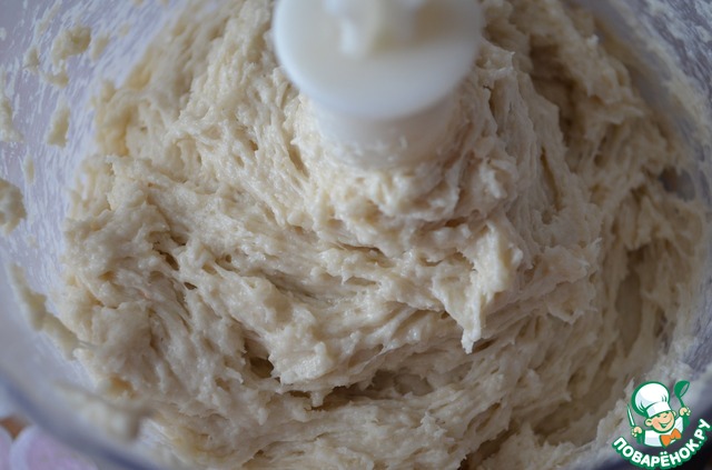 Орехи измельчаем в кофемолке, добавляем к тесту. В блендере пробиваем тесто с 2 ст. л. сахарной пудры и орехами.