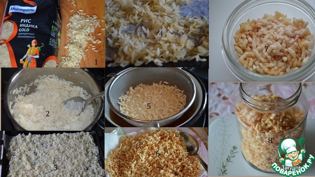 Для приготовления воздушного риса берем длиннозерный рис, желательно пропаренный. У меня- рис Индика Голд ТМ "Мистраль", отличный рис. (1)