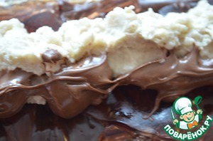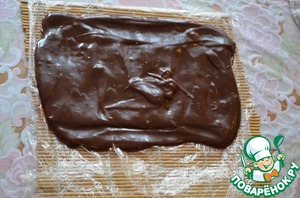 На шоколад аккуратно выкладываем желатиновый пласт из сока.