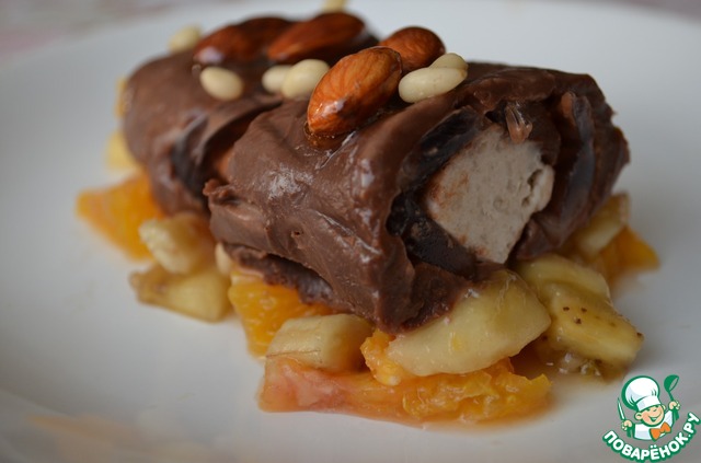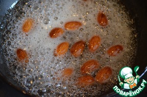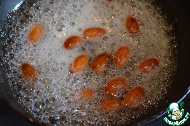Орехи карамелизируем в смеси сахара 50г. и сока лимона. Выкладываем орешки на ролл.