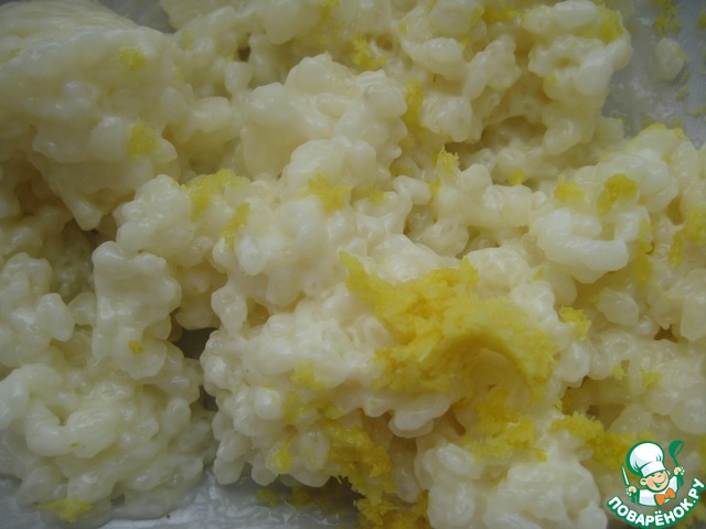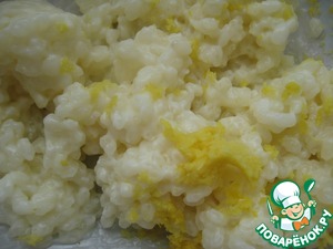 В рис добавляем цедру половинки лимона, примерно 2 ст. л. лимонного сока и 1/2 банана. пробиваем хорошо блендером. Ставим на холод.