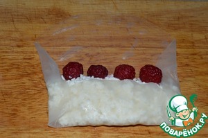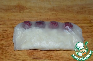 Загнуть нижнее и боковые края, положить ягоды малины.