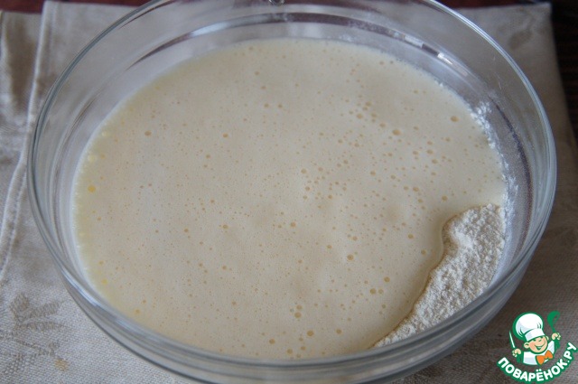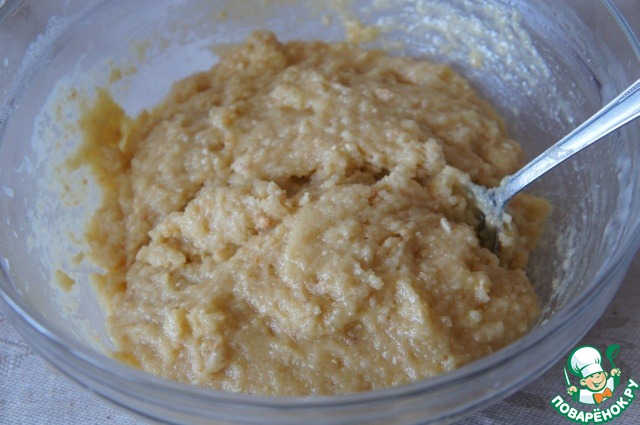 Влить растопленное масло и перемешать. Тесто получается густоватое.