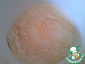 Смешать все сухие ингредиенты - мука, дрожжи, соль.