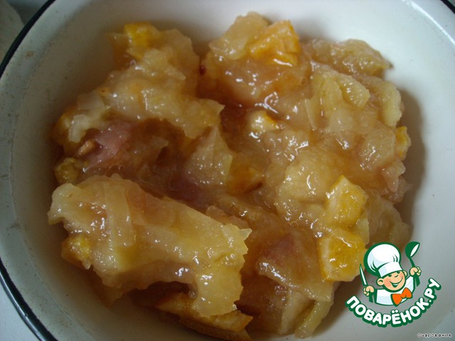 Подготовить начинку, я использовала повидло яблочное с апельсинами.